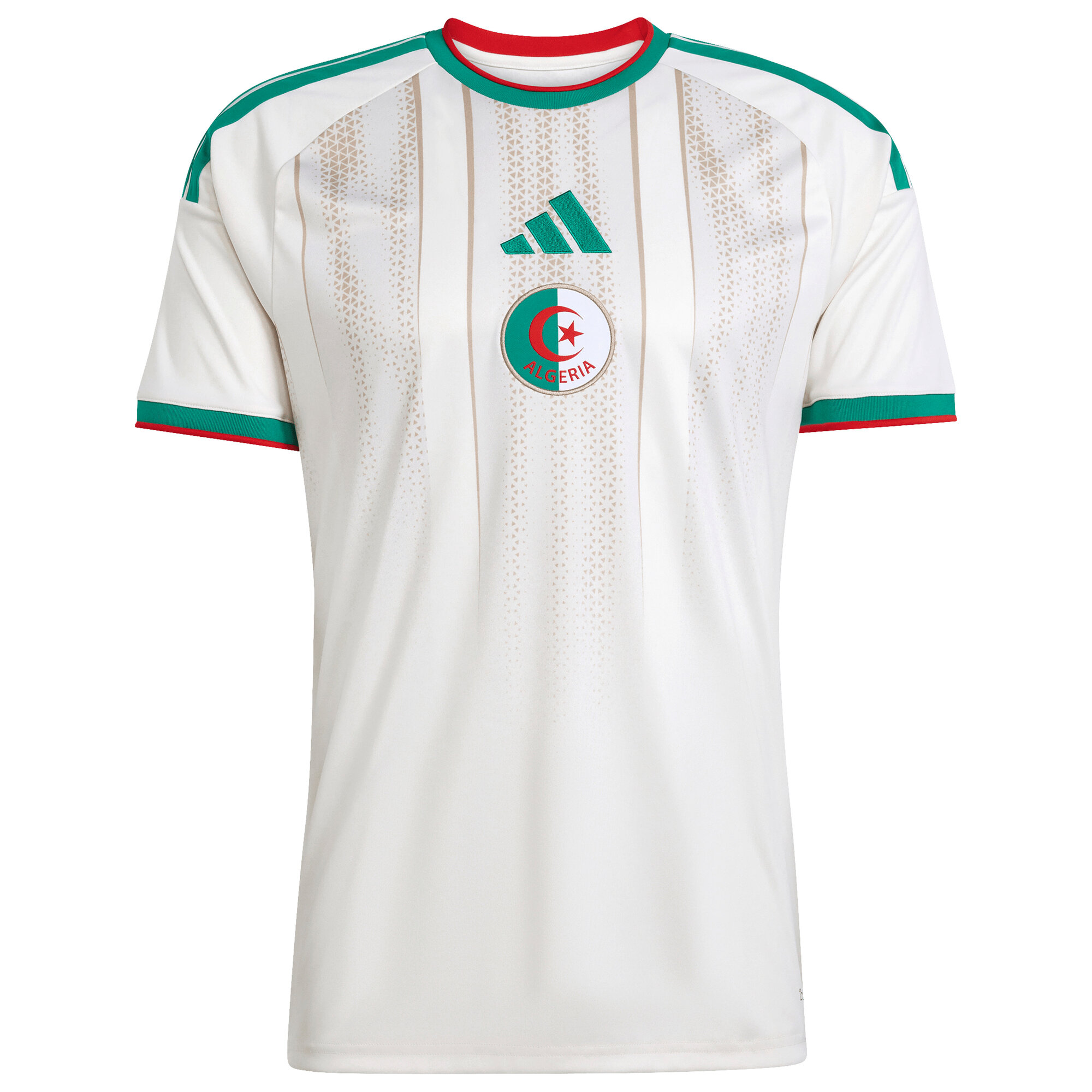 Portez haut les couleurs des Fennecs avec le nouveau maillot Algérie Domicile 2026. Pour cette saison 2025/2026, Adidas rend un hommage vibrant à la terre d'Algérie, capturant l'âme d'une nation passionnée de football. Que ce soit pour les qualifications mondiales ou les joutes continentales, cette tunique incarne l'unité et la fierté d'un peuple prêt à vibrer derrière son équipe nationale avec ferveur et élégance.