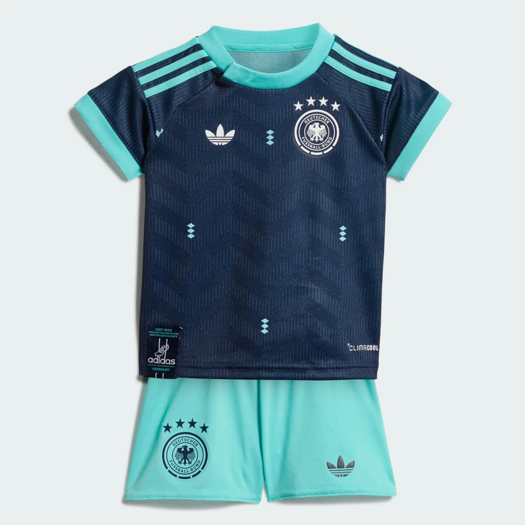 Préparez la nouvelle génération de supporters de la Mannschaft avec ce superbe Mini-Kit Allemagne Extérieur 2026 conçu par Adidas. Alors que l'équipe nationale se prépare pour les nouveaux défis internationaux de la saison 2026/2027, ce kit permet aux plus jeunes de porter fièrement les couleurs d'une nation historique du football mondial. C'est l'équipement idéal pour transmettre la passion du ballon rond dès le plus jeune âge avec un style résolument moderne.