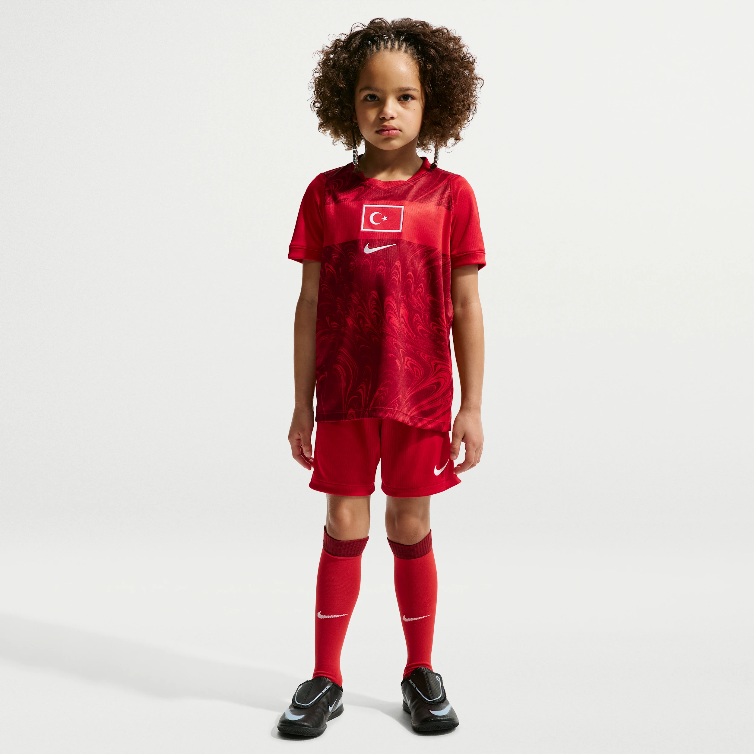 Cet ensemble trois pièces aux couleurs de l'équipe est parfait pour les futures stars du foot. Inspiré de la tenue des pros sur le terrain, il comprend un haut d'équipe, un short et les chaussettes assorties. Avec son tissu anti-transpirant léger, les jeunes athlètes courent et jouent sans limites.